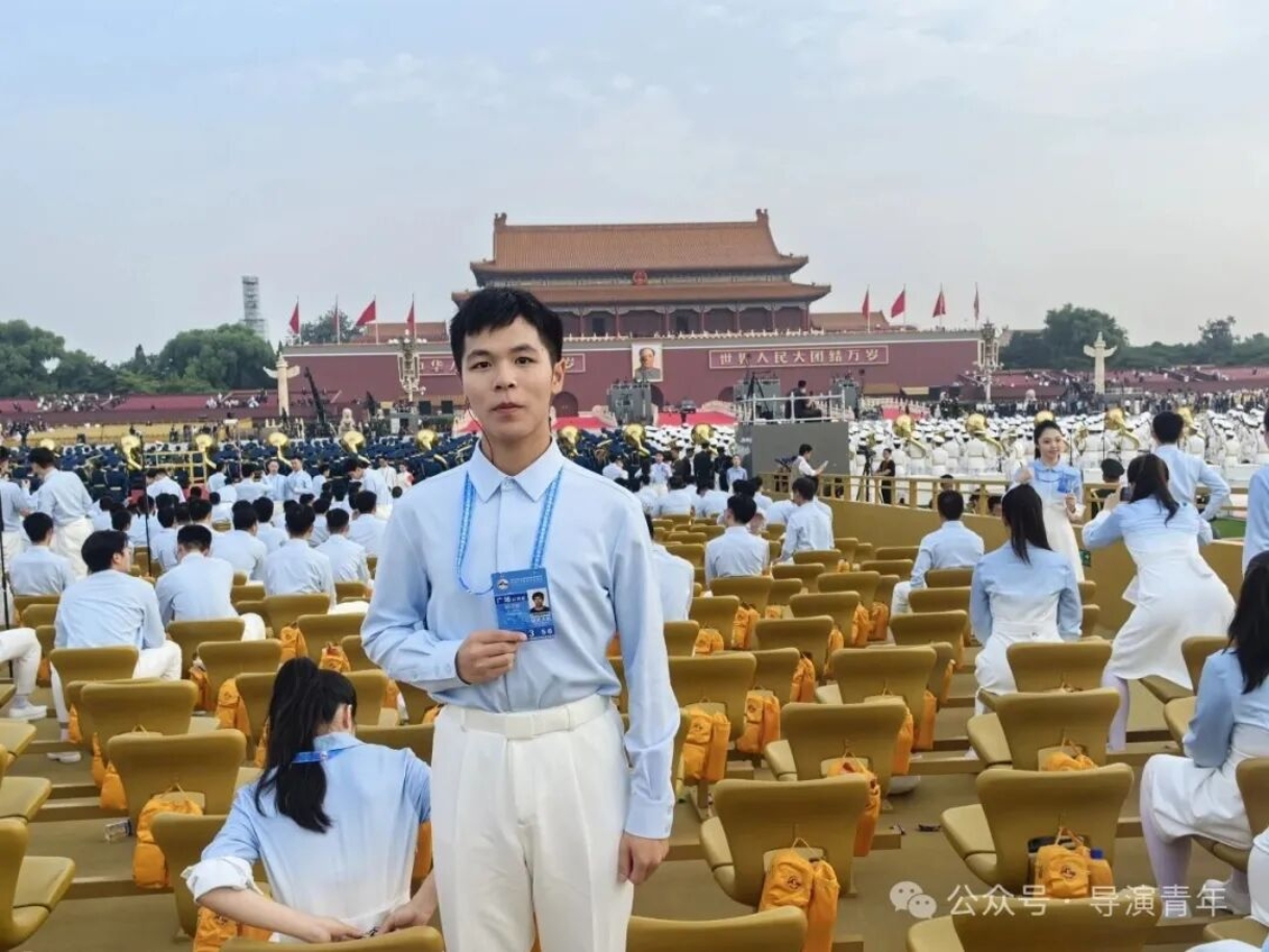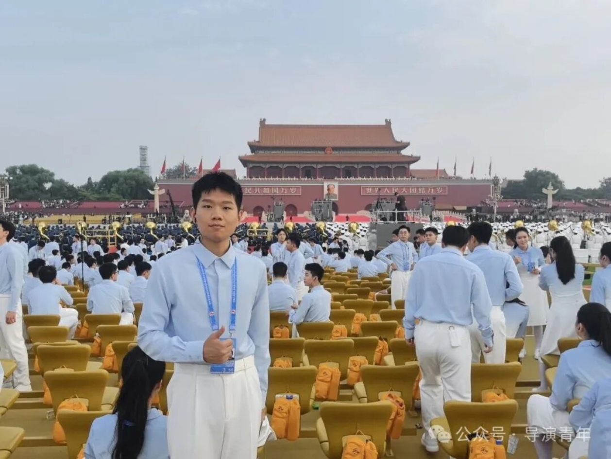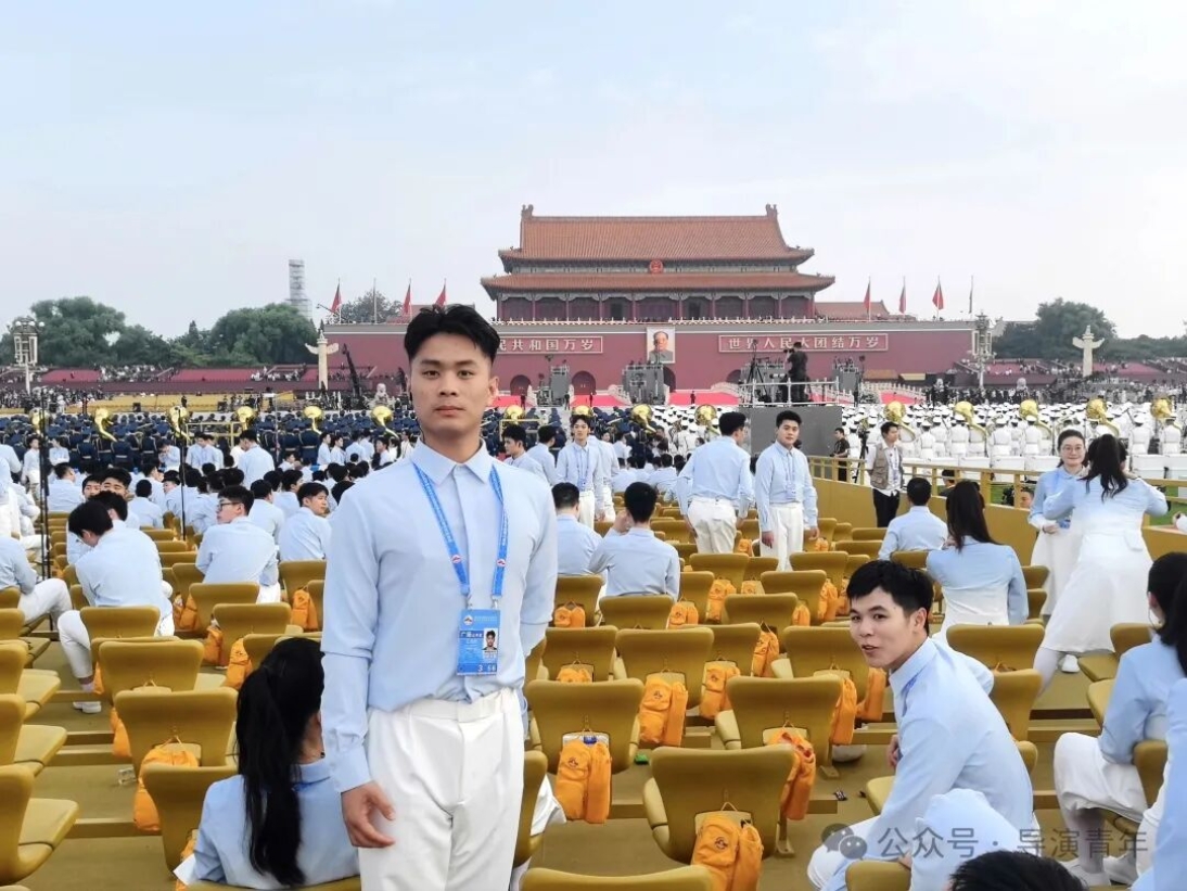 能亲身参与重大活动,是我人生中足以铭记的珍贵经历。在天安门广场演练时,高强度的训练曾让我倍感压力,但解放军战士风雨无阻、以阅兵标准坚守的身影,深深触动了我,他们的执着成为我的动力。作为组长,我不仅克服了自身困难,更学会了高效统筹与协调,带领组员共同成长,无数个日夜的并肩排练,见证了我们从磨合到默契的蜕变,当最终在合唱与各环节中展现出最佳状态和导演系的风采时,内心的自豪难以言喻。这次经历让我真切体会到“一棵菜”精神的内涵,也让我在未来的艺术道路上,更懂如何以责任与协作,创作出更有力量的作品。
