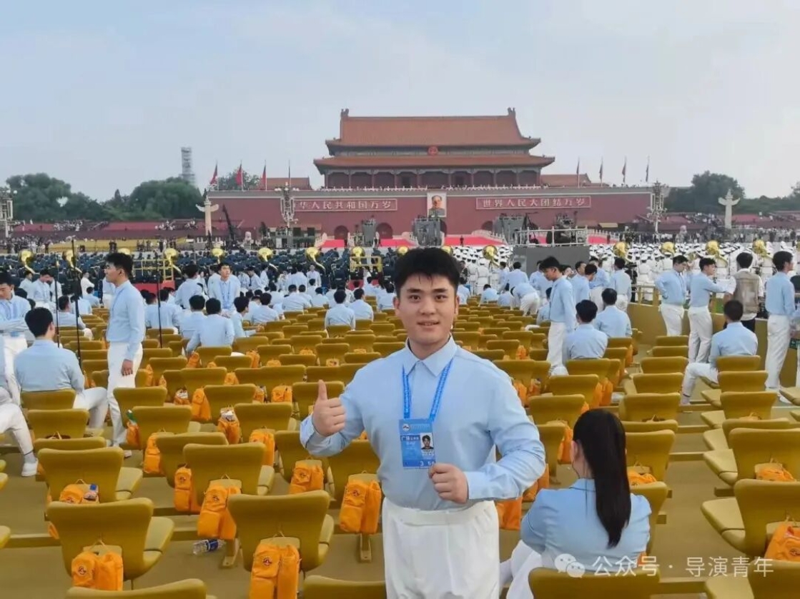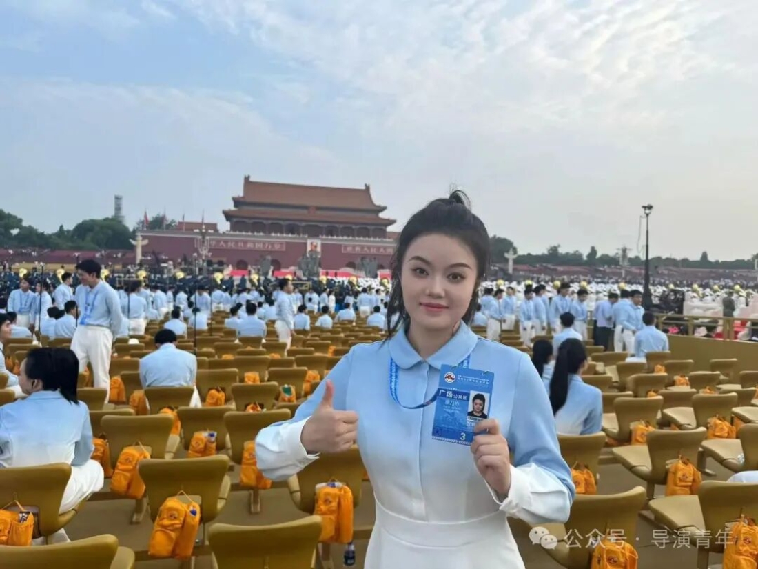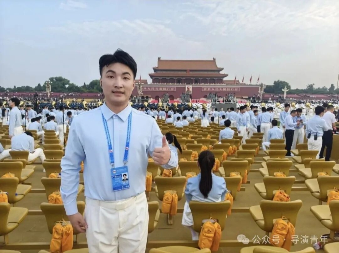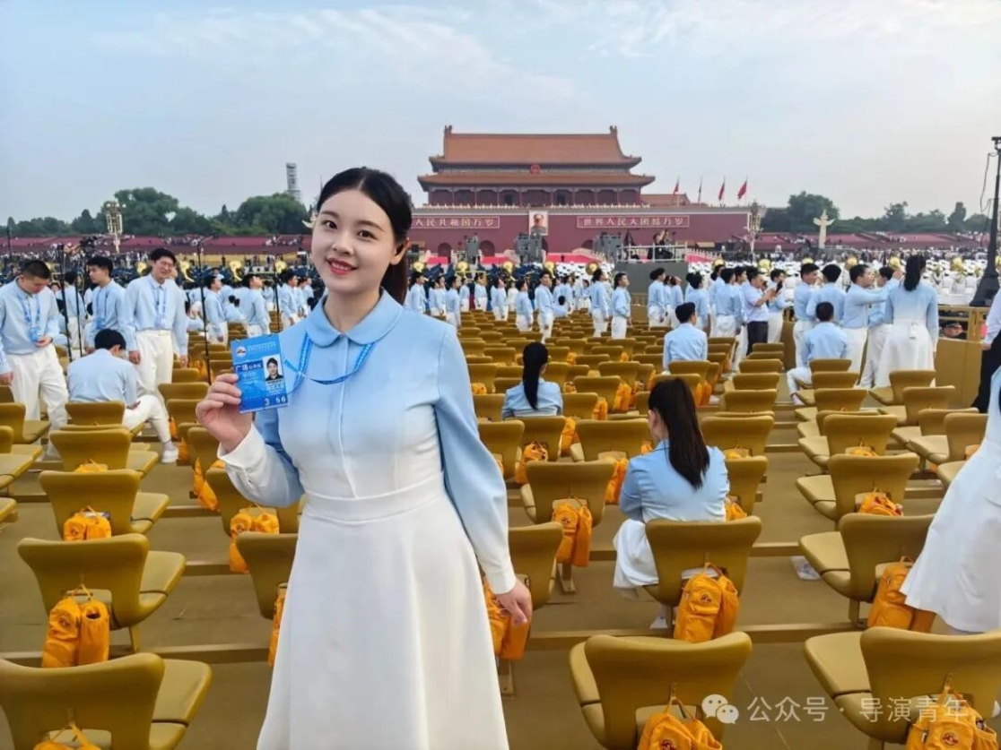 能亲身参与重大活动,是我人生中足以铭记的珍贵经历。在天安门广场演练时,高强度的训练曾让我倍感压力,但解放军战士风雨无阻、以阅兵标准坚守的身影,深深触动了我,他们的执着成为我的动力。作为组长,我不仅克服了自身困难,更学会了高效统筹与协调,带领组员共同成长,无数个日夜的并肩排练,见证了我们从磨合到默契的蜕变,当最终在合唱与各环节中展现出最佳状态和导演系的风采时,内心的自豪难以言喻。这次经历让我真切体会到“一棵菜”精神的内涵,也让我在未来的艺术道路上,更懂如何以责任与协作,创作出更有力量的作品。