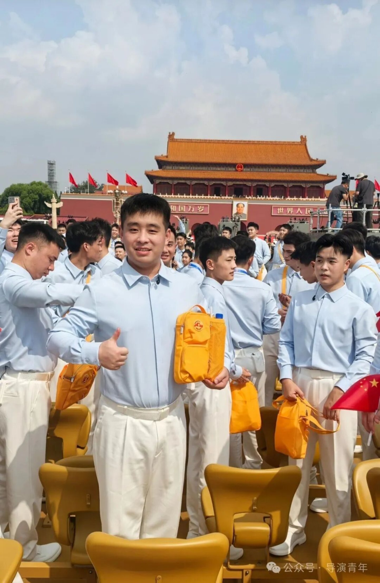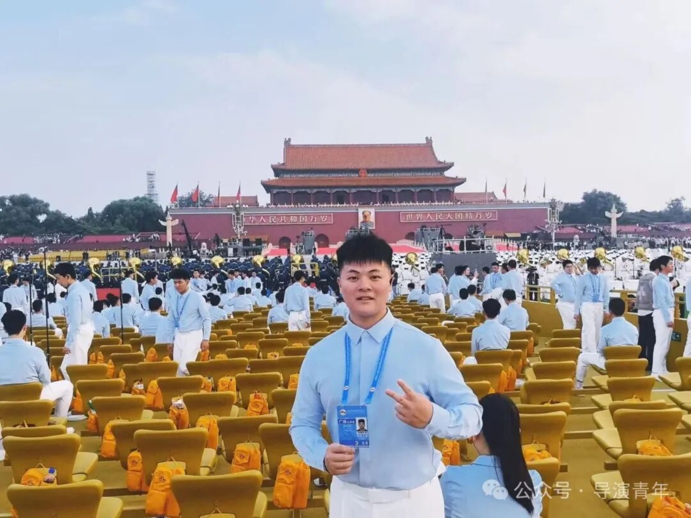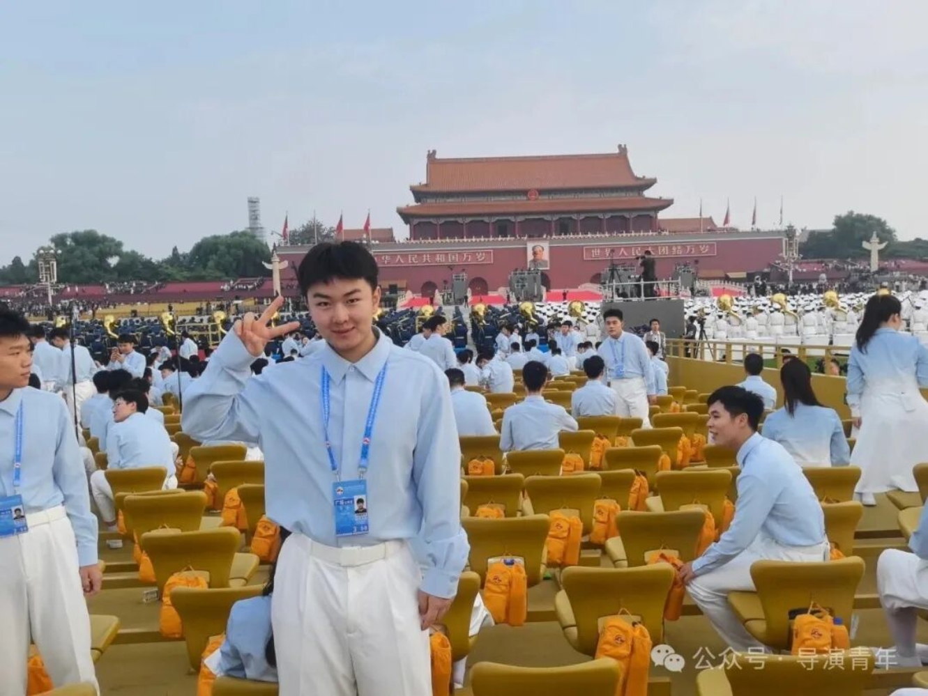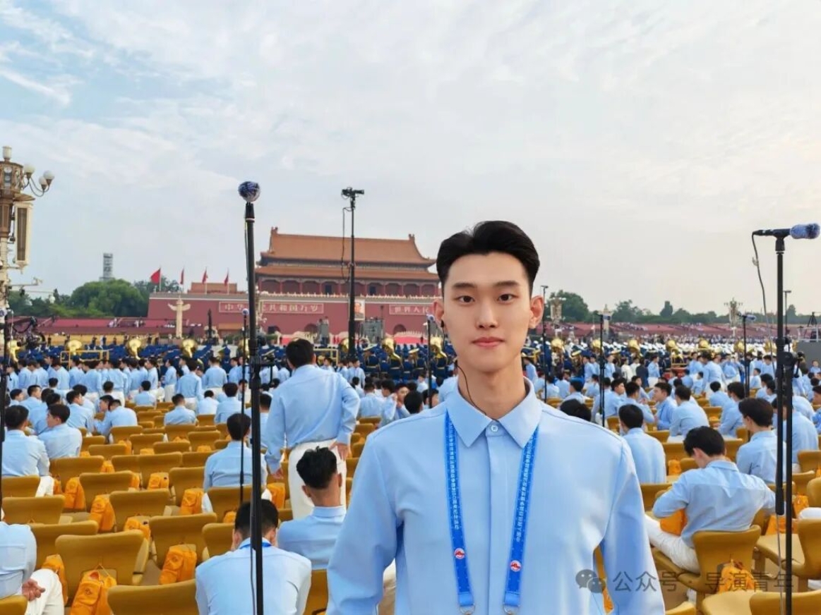 初次作为仪式人员踏入天安门,与同学们同行至集合点,期待感油然而生。当城楼灯光在夜幕中点亮,暖黄光芒瞬间点燃了我内心的激动。曾觉排练时心中总有空缺,直至亲身立于广场,仰望国旗升起,才真切感受到热血奔涌。最近距离见证升旗仪式,仪仗队整齐的步伐、枪械落地的铿锵和冉冉升起的国旗,一次次让我热泪盈眶。当三千人同声唱响“九一八”,从低沉诉说至激昂高歌,每句歌词都化作我们共同的赤子之心。此刻我深知,这不仅是一次演出,更是中国青年以青春之名向世界展现担当与热爱的庄严仪式。