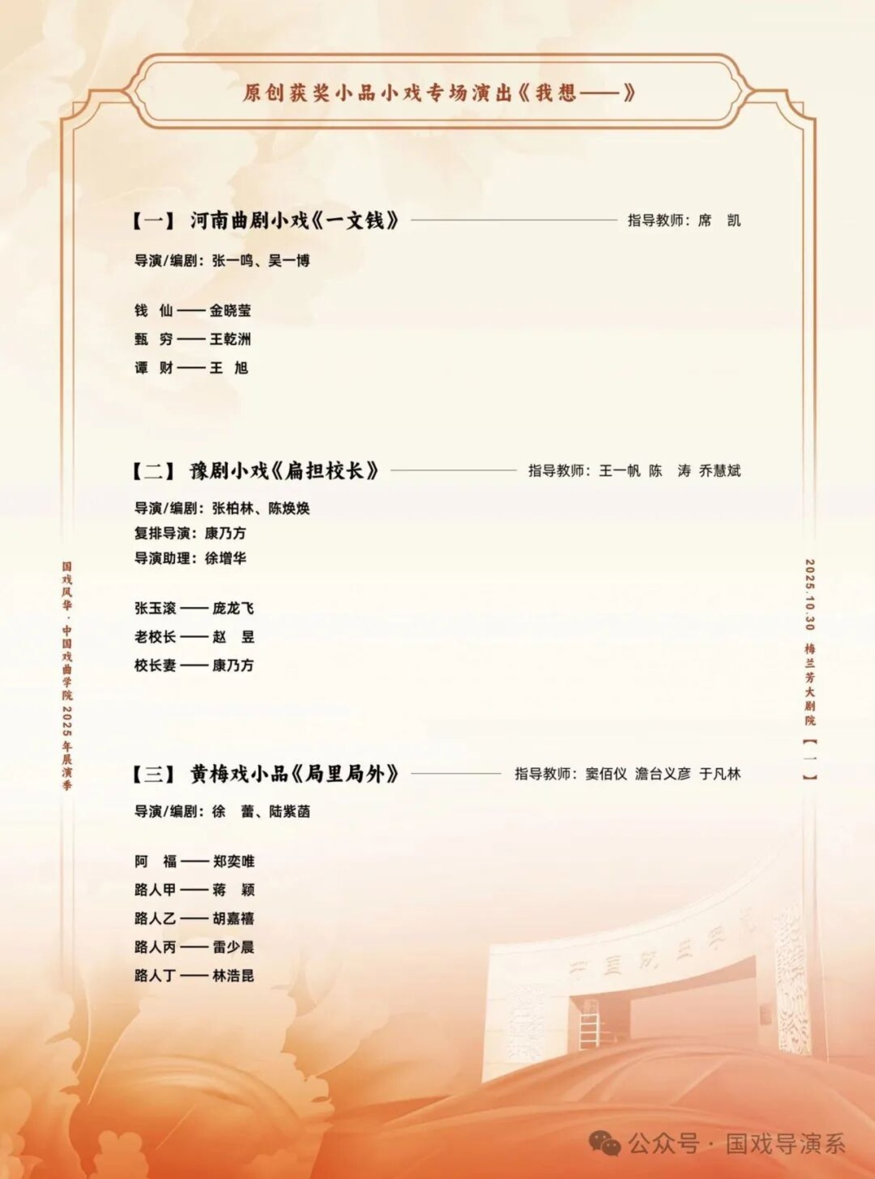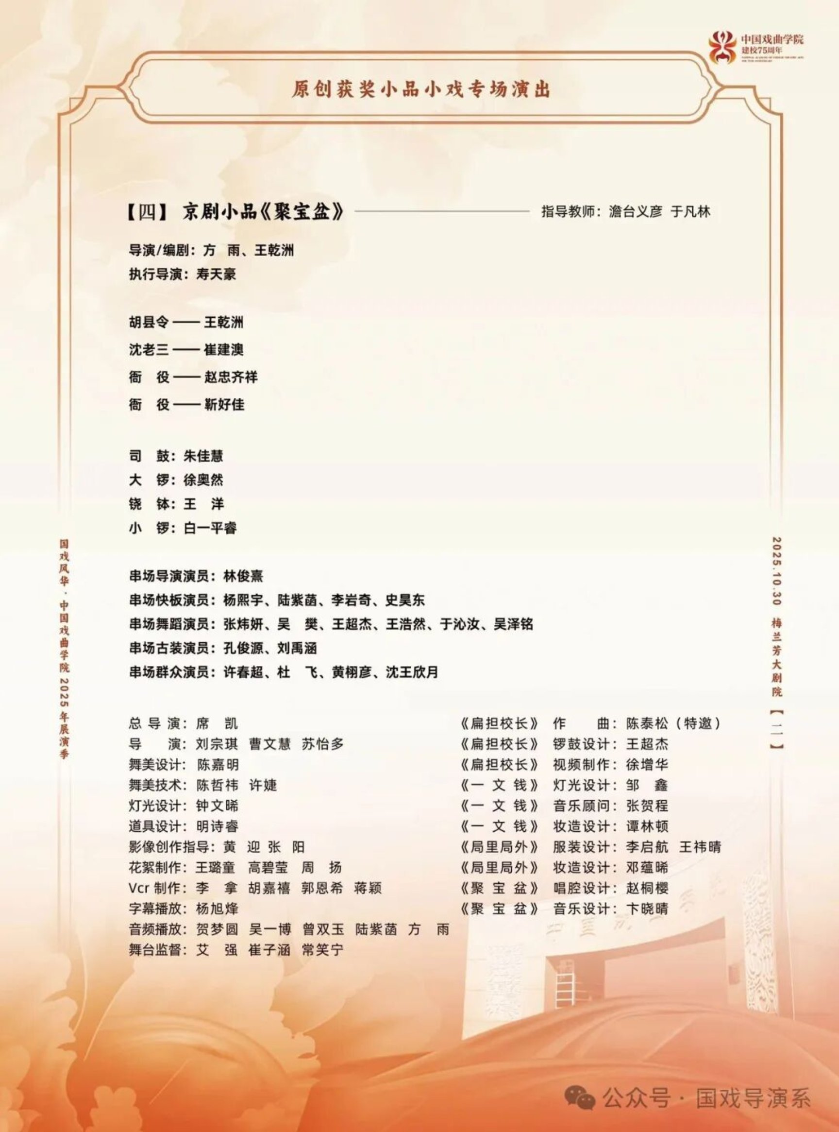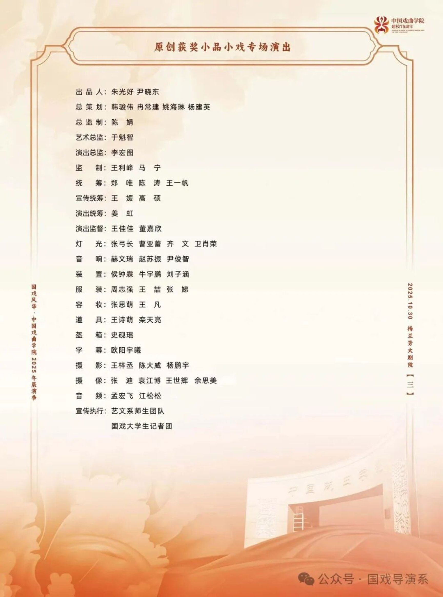 国戏风华·中国戏曲学院2025年展演季原创获奖小品小戏专场演出即将上演!