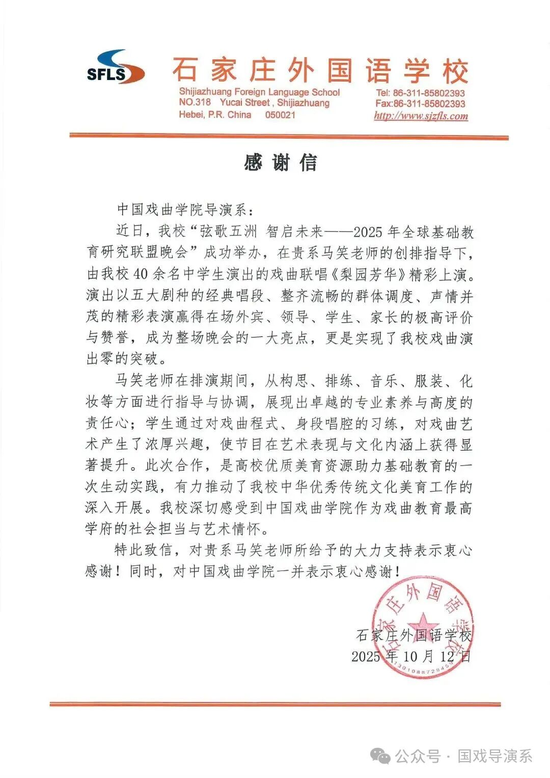 教师风采:用戏曲力量赋能教育、乡村与社区发展 近期,我系教师充分发挥专业优势,在基础教育帮扶、乡村振兴服务及社区精神文明建设... -